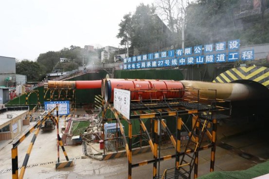 城轨快线27号线中梁山隧道工程施工现场。