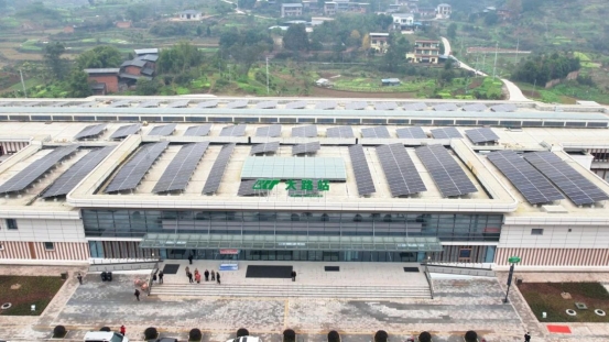 今年新开通运营的重庆市郊铁路璧铜线,采用光伏电能“自发自用”模式,在6个车站、停车场,安置了8套光伏设备,每年发电量达300多万度,在降低运营成本、优化乘坐体验的同时,又助力城市绿色交通转型。