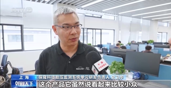 保隆科技胎压监测系统单元研发负责人 史卫华:这个产品虽然看起来比较小众,但是它实际上门槛比较高,就一个小小的产品在全球来说100多个专利。