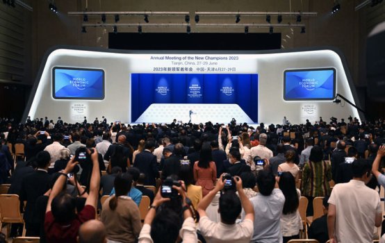 这是2023年6月27日在天津拍摄的第十四届夏季达沃斯论坛开幕式。