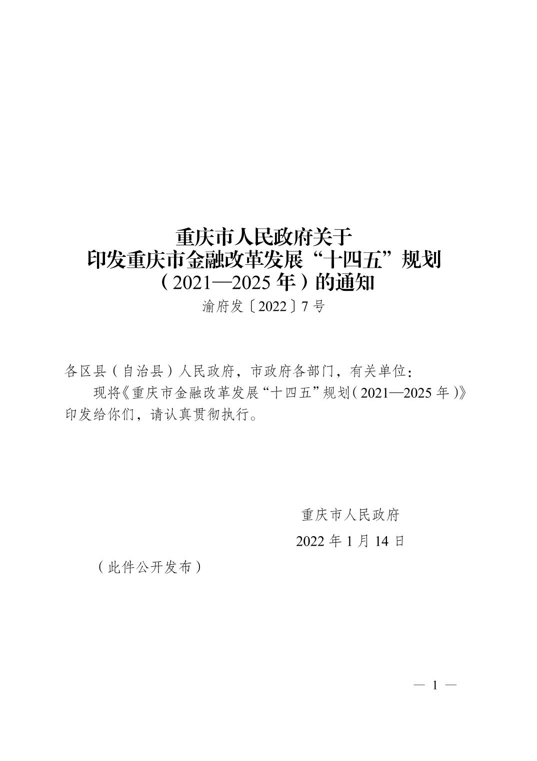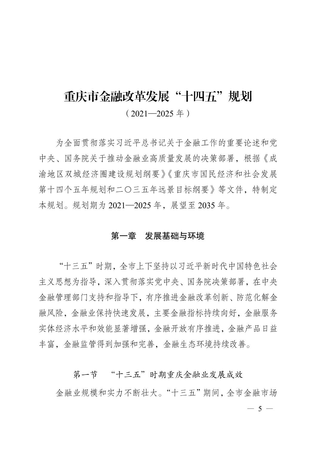 重庆市人民极品探花 关于印发重庆市金融改革发展“十四五”规划(2021—2025年)的通知